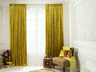 Напълно приемливо е кадифените завеси да се съкратят – например точно под перваза на прозореца. В този случай те трябва да бъдат много обемни, за да образуват голям брой красиви гънки..