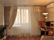 Ако прозорецът е малък, можете да го украсите с една кадифена завеса – това също изглежда много красиво. Тюлът е окачен под завесата. През деня завесата се премества настрани, а тюлът покрива отвора на прозореца.
