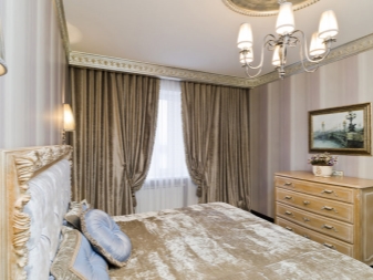 За класически стил в стаята можете да използвате гладка кадифе или плат с бродерия, прах, декоративни вложки. Матовите и лъскави опции ще изглеждат еднакво добре..