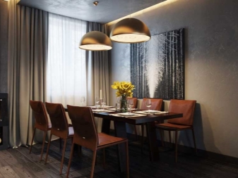 Определено „да“ може да се каже на кадифените завеси за модерен стил Loft. Плътният и плътен материал от купчини перфектно ще допълни студени бетонни или тухлени стени. Малко претенциозно, но много органично в такъв интериор ще изглежда като оребрени пердета от велпап.