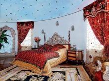 Кадифените завеси се вписват идеално в ориенталския стил на интериорна декорация. Декорът на стаята в тези посоки е богат, богат и скъп..