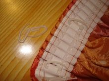 - За куки и крокодили. Зашийте лентата сами, като използвате много дебела ирисова нишка като връзки или изчислете коефициента на събиране и ръчно поставете гънките.