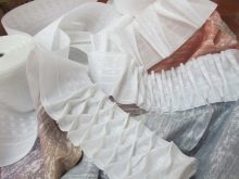 - Вдъхновения. За разлика от колоните, той има обратен ефект – неравни гънки. Когато е сглобен, той прилича на „вафлена“ повърхност, следователно „вафла“ е второто име за този вид драперия;