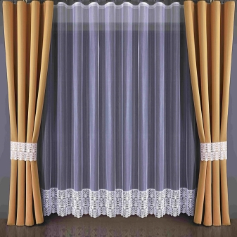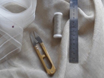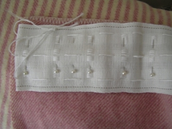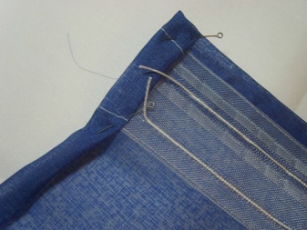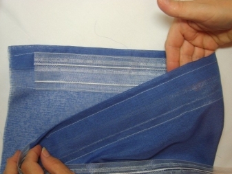 - Довършителни завеси или тюл, което е избрано за комбинацията с лентата. Това се отнася за онези видове тъкани, които имат разпадащ се, нефабричен дънен или страничен ръб. В този случай тя трябва да бъде завършена с двоен подгъв. За готови завеси, към които трябва само да шиете лента, не се изискват манипулации.