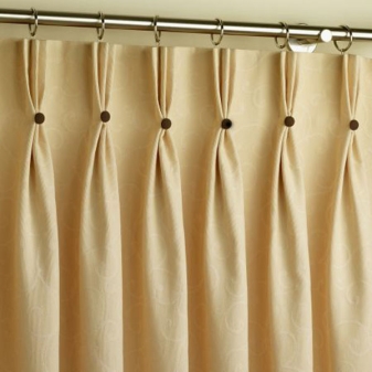 Гънките на завесите са гъвкави. Класическият монтаж на молив върху неутрална обикновена тъкан до перваза на прозореца е подходящ за общинска организация или офис, оригинални вентилатори или чаши на завеси до пода ще бъдат подходящи в хол в исторически стил, леки вдишвания върху затъмнени завеси ще перфектно допълват спалнята и ярки завеси с лъкове – детска стая.