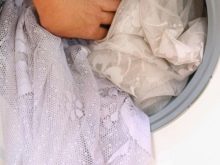 Например, при пране на памучен тюл, ако е много замърсен, накисването отнема много време.. В същото време, в зависимост от състава на материала, се избират различни температурни режими: чист памучен тюл се пере при температура 60 ?, И такъв, който също има определен набор от синтетични добавки – при 40%.