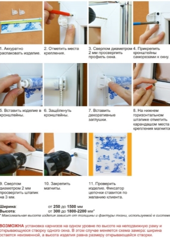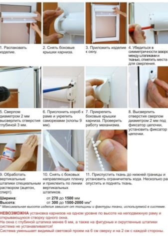 Монтажът на касетни ролкови системи е възможен върху различни видове прозорци с двоен стъклопакет: както върху пластмасови прозорци, така и върху дървени модели, но само изработени съгласно европейските стандарти. Общи са два вида монтаж. Първият включва пробиване, вторият е направен с помощта на двустранна монтажна лента. По -долу е опция как да инсталирате завесите без пробиване. Този подход е по -лесен и не изисква специално обучение..