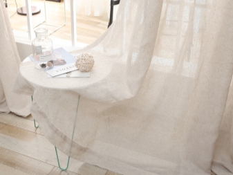 Ленени платове с релеф често украсяват прозорците на спалнята и хола.. Трайността на такова платно е невероятна – лененият тюл може да запази естествената красота в продължение на десетилетия, той се наследява.