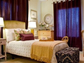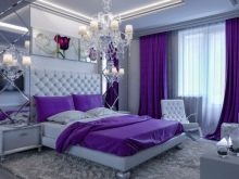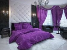 Спалнята е специално място в къщата. Тук, както в никоя друга част на къщата, комфортът и уютът са важни. За зоната за спане лилавите завеси са идеални, особено направени в тъмни цветове. Те ще създадат атмосфера на изтънченост и известен мистицизъм в стаята..