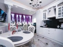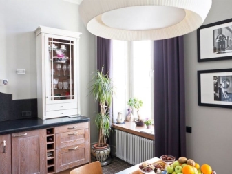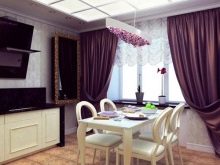 Някои психолози смятат, че твърде много лилаво влияе на апетита ви. В тази връзка е по -добре да откажете тъмните завеси за декориране на прозорци в кухнята. Ако стаята е декорирана в модерен стил, можете да изберете продукти от светли материи в цвят люляк. Опции с розов оттенък също са подходящи..
