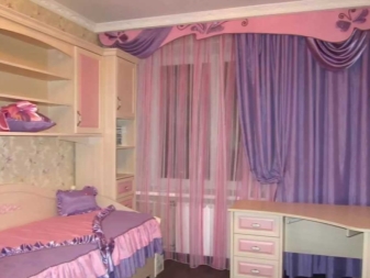 За декор на спалня на момиче можете да изберете лек и деликатен тюл в тоновете на горния цвят. Основният тон може да се комбинира с други цветове, създавайки очарователен и пъстър дует.