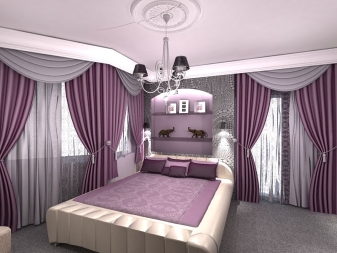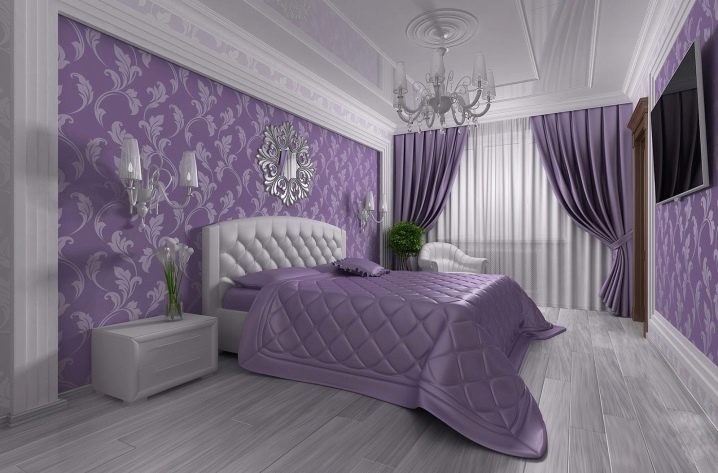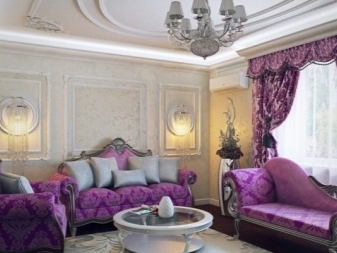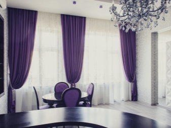 Лилавите завеси са подходящи за стаи в различни стилове. За определен дизайн са предвидени определена цветова схема, текстура на тъканта, нейната дължина и дебелина..