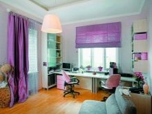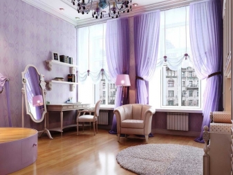 Лилавите завеси могат да украсят стаята на дете или тийнейджър. Можете също така да използвате различни нюанси, за да украсите отворите на прозорци в тази част на къщата. Психолозите отбелязват, че този цвят има благоприятен ефект върху развитието на творческите способности при децата..