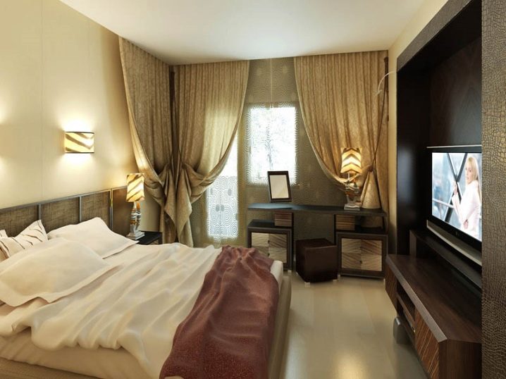- Също така е важно да се вземат предвид пропорциите на спалнята и стиловото единство на интериора.. Решете дали завесите трябва да са ярък семантичен акцент или са предназначени само да подчертаят вече съществуващия интериор. Завесите за спалнята могат да послужат като контрастен детайл не само поради киселинния цвят. Можете да използвате интересен модел, който ще привлече вниманието, но в същото време няма да ви дразни..