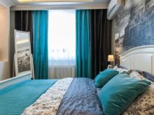 - Също така е важно да се вземат предвид пропорциите на спалнята и стиловото единство на интериора.. Решете дали завесите трябва да са ярък семантичен акцент или са предназначени само да подчертаят вече съществуващия интериор. Завесите за спалнята могат да послужат като контрастен детайл не само поради киселинния цвят. Можете да използвате интересен модел, който ще привлече вниманието, но в същото време няма да ви дразни..