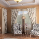 - Chintz. За завеси се изработват каликови тъкани със средна плътност, които са много еластични: лесно се създават събирания и гънки.
