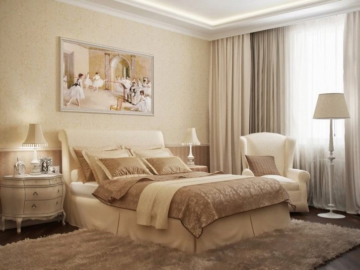 - Бежови, кремави или кафяви обикновени завеси, подбрани в строго съответствие с обзавеждането, се вписват идеално в класическа спалня. Завесите трябва да са луксозни, но строги; използването на декоративни елементи е минимално.