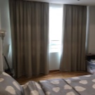- Високи защитни свойства от слънчева светлина. Благодарение на затъмнените завеси, техните собственици имат чудесна възможност да спят възможно най -дълго през уикендите. Нито слънчев лъч няма да мине през плътните завеси.