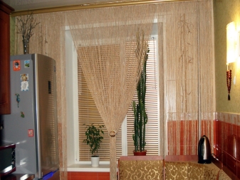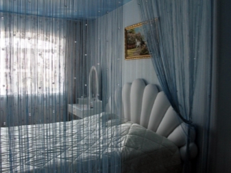 - Текстилът под формата на конци пропуска много светлина в стаята. Ето защо, преди да изберете такива завеси за прозорците, вземете предвид осветлението на стаята. Ако прозорците са с изток или юг, тогава не винаги е препоръчително да го изпълвате с много светлина, особено ако става въпрос за спалня. Конструкциите с нишки не предпазват сутринта от коварната слънчева светлина.