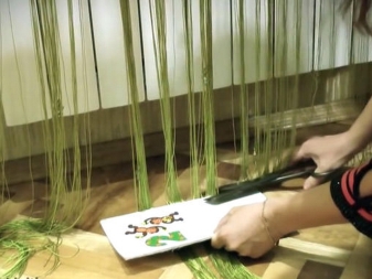 На първо място, трябва сами да подготвите пердето. Използвайте проста дървена конструкция. По желание може да се покрие с боя или емайл. Изградете стрехите и ги монтирайте с телени пръстени. За да създадете самите завеси, сгънете нишките с необходимата дължина точно един спрямо друг. Няколко сантиметра дължина трябва да бъдат запазени допълнително за възли. След това можете да започнете да връзвате нишките на корниза..