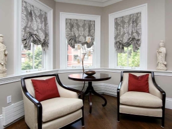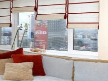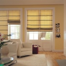 Функционалност. Римските щори могат да се използват не само за създаване на уютен интериор на дневни, но и за декориране на барове, хотели, офиси. Възможно е да се използват завеси с други видове декор на прозорци.