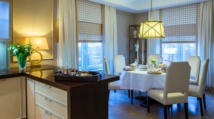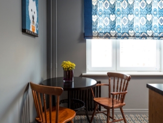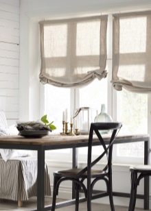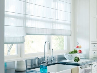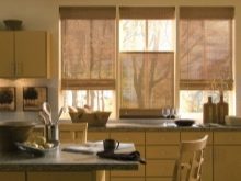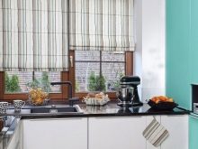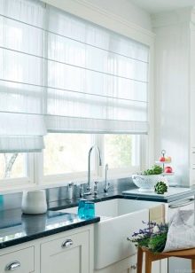 Разнообразие от материални решения, голяма палитра от цветове и стилен дизайн ви позволяват да използвате римски щори, за да създадете красив интериор във вашата кухня. Тъй като тези завеси не заемат много място, те могат лесно да се поставят дори в най -малките кухни. Що се отнася до материала, по -добре е да се даде предпочитание на леки тъкани, изработени от синтетични материали. Техните безспорни предимства ще бъдат отблъскване на прах, мазнини и мръсотия, устойчивост на абсорбиране на миризми, лекота на поддръжка..