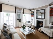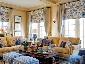 За да украсите прозорци в големи стаи, можете да добавите завеси към римските щори. Това ще направи стаята по -стилна и ще добави известна функционалност към отвора на прозореца. Ако такава комбинация не може да бъде реализирана, трябва да изберете завеси от плътни материали. В същото време не трябва да се изпуска от поглед цветовата схема. Платна в светли цветове могат да придадат лекота на интериора. Ако искате да направите стаята по -изискана, съчетайте завесите с пъстър модел към стените. Дебели платна на прозорците, като гоблени или жакард, ще създадат атмосфера на тържественост и аристократизъм. Също така платна с необичайни цветове или редуване на различни видове тъкани ще се впишат перфектно в хола..