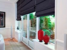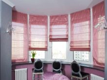 Римските щори са не по -малко търсени, ако искате да контролирате потока светлина, влизащ през лоджията. Ако имате слънчева страна, тогава трябва да дадете предпочитание на плътни материали. Балконът може да бъде затворен напълно с пердета: или закачете завеси на всяко крило, или окачете едно общо. И можете да го улесните и да окачите платно, подходящо по текстура на балконската врата.