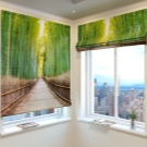 До горната част на рамката. Едно платно се купува по ширината на прозореца, тоест всички крила се затварят наведнъж. Перваза на прозореца остава свободно достъпен. От минусите на този метод може да се отбележи сложността, която възниква, когато е необходимо да се проветри или отвори прозорец..
