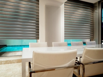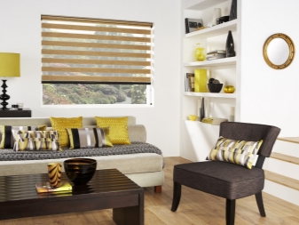 Тъй като ролетни щори, благодарение на уникалния си механизъм за регулиране на светлинния поток, могат да действат както като завеса от тюл, така и като обикновени завеси, няма нужда да купувате тези интериорни предмети отделно, което ще спести много пари. Тъй като всички ивици на такива щори са направени под формата на прави и ясно очертани линии, това допринася за визуалния ефект от разширяването на всяко пространство. Размерите могат да бъдат избрани според желанията на купувача, а самите завеси могат да бъдат украсени с всеки модел.