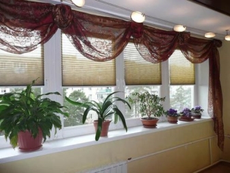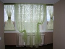 За малък балкон или лоджия можете да вземете къс тюл, който не покрива напълно прозореца. Този декор изглежда спретнат и ненатрапчив..