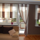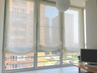 Практичен и удобен вариант са моделите с повдигащ механизъм. Това могат да бъдат добре познати ролетни щори или римски завеси. И с тяхна помощ е лесно да регулирате дължината. При проектирането на компактна стая е по -добре да украсите всяка рамка на прозореца поотделно..