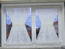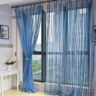 Когато избирате такива завеси, не трябва да мислите за страничната част на прозорците, които се отварят в случай, че тюлът е прикрепен към рамката на прозореца, а не към стената..