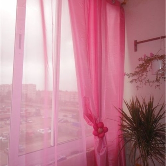 - Ако балконът е в непосредствена близост до спалнята на момичето или жената, можете да изберете завеси с розов тюл.