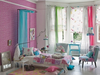Както ролетни щори, така и капси са подходящи за детската стая. За момиче добавете нежно розово към тюркоазената тъкан за френски завеси и други слоести опции.