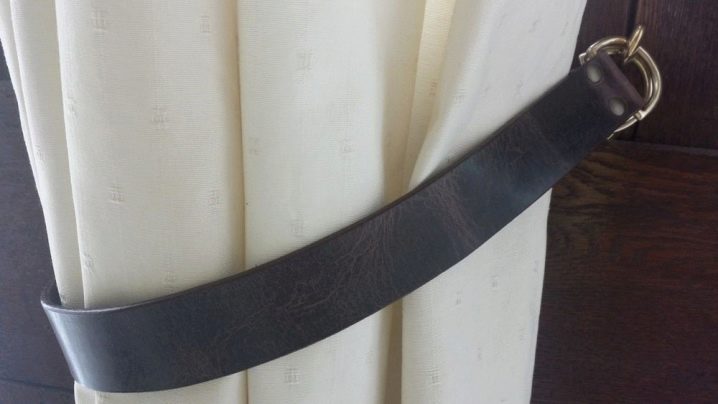 Доста често класическите черни колани се избират като пикап за завеси за шкафове. Опции от няколко ивици изглеждат по -интересни, както и модели на плитка. За по -малко официална стая, тирантите са чудесни..