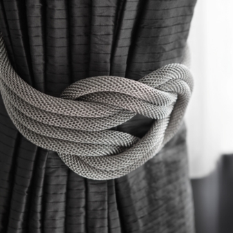 Същото може да се каже и за кабелите.. Въжето не отстъпва по здравина на кожен продукт, въпреки факта, че е доста тънко. Избирайки скъп вариант с плътно тъкане, не можете да се страхувате, че тежката структура ще се разпадне; тънки плетени модели перфектно ще допълнят завесите.