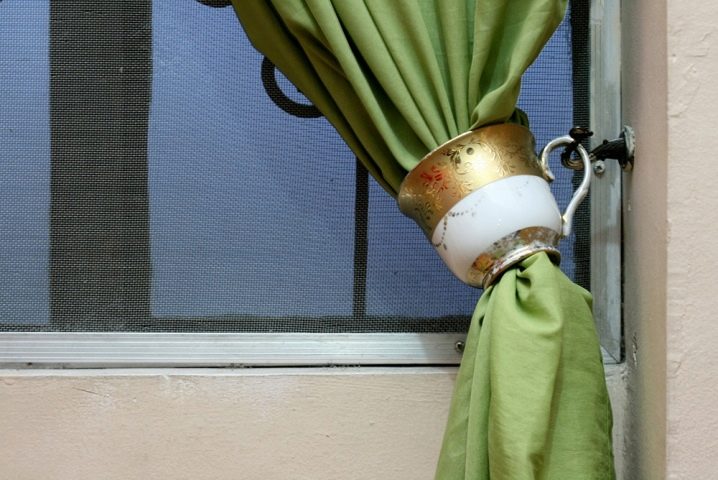 Оригинални държачи за кухненски завеси могат да бъдат направени с обикновена вилица и лъжица. Просто трябва да огънете дръжката според нуждите и захващането е готово. Интересно и смело решение би било да използвате чаша. Тази опция е подходяща само за леки завеси..