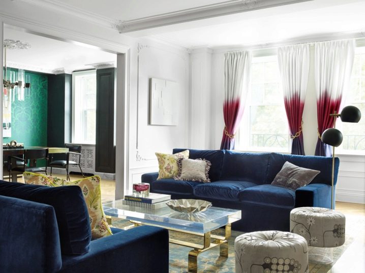 Леко събрани върху подложките на завесите изглеждат обемни и луксозни. Моля, обърнете внимание, че дизайнерът е поставил куките на различни височини, правейки стаята по -интересна. Събиранията са спретнати и равномерни, а прозорецът е по -елегантен. Възможно е да се предположи използването на магнитни държачи.