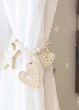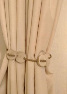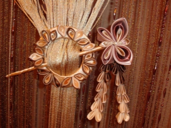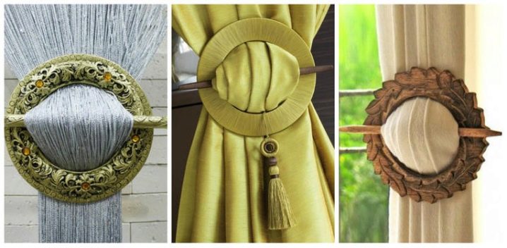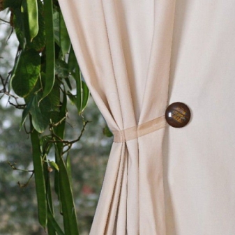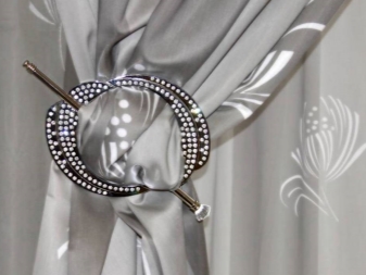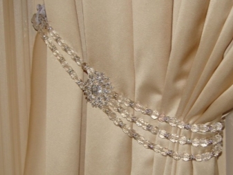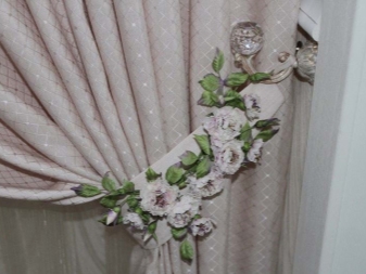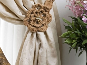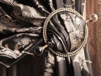 Tiebacks ви позволява да актуализирате скучния вид на завесите. Благодарение на този детайл върху завесите се появяват ефектни драперии, което прави завесите напълно различни на външен вид. В допълнение, сглобките помагат да се скрият дефектите на платното, така че трябва да се опитате да завесите завесите, преди да купите нови..