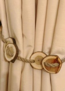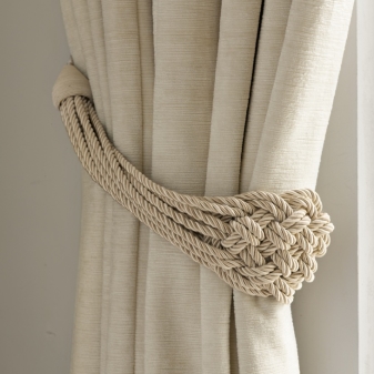 Същото може да се каже и за кабелите.. Въжето не отстъпва по здравина на кожен продукт, въпреки факта, че е доста тънко. Избирайки скъп вариант с плътно тъкане, не можете да се страхувате, че тежката структура ще се разпадне; тънки плетени модели перфектно ще допълнят завесите.