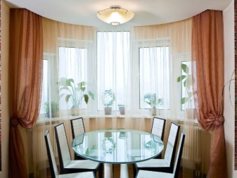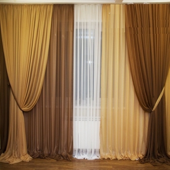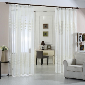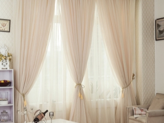 На първо място, трябва да се съсредоточите върху общия стил на стаята и върху избраната рисунка на завесите. Така че дебелите релефни завеси ще бъдат добре допълнени от летящ микро-воал, който не привлича вниманието към себе си и в същото време предпазва стаята от твърде ярка светлина..
