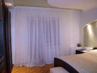 Същото правило важи и за завесите с дължина на пода. Например, за стандартни апартаменти, построени от Хрушчов с ниски тавани, трябва да поръчате завеси от воал с височина 250 сантиметра, не по-малко.