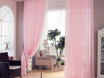 Завесите Voile могат да бъдат окачени не само на прозореца. Например, арка може също да бъде украсена с този тип завеса. Като ги оборудвате с грайфери, ще придадете на стаята невероятно романтична атмосфера. Този декор е най -подходящ за стаи в Прованс или Шаби шик..