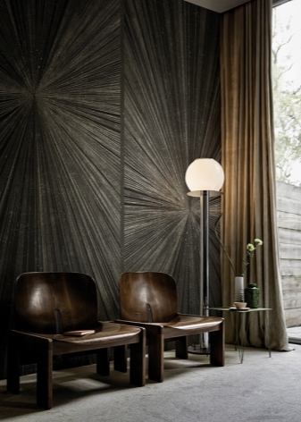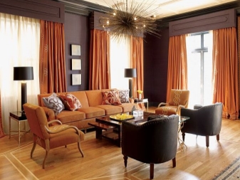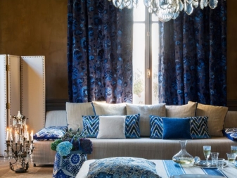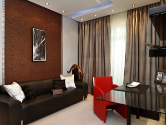 Цветните кафяви стени могат да бъдат поддържани от пердета с подобни шарки в същите цветове; други цветове няма да съвпадат. Например, върху тапета са релефни лайки, а орхидеите върху завесите ще се превърнат в дисонанс..
