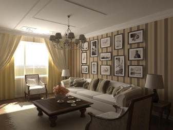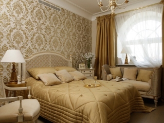 Простотата или сложността на модела на тапета определя дизайна на завесите. Класиката изисква дамаски модел тапет, златни букети върху платното на стената, златни нишки в текстил. Ламбрекен ще бъде незаменим елемент в такъв интериор. Ламбрекенът може да бъде единичен, изработен от плат за завеси, или може да бъде сложен, с включване на тюл. Тюлът в такива композиции обикновено е бял, кремав, кафе или бледосин. Кралска изтънченост се придава от синия цвят на завеси със златен модел в комбинация със златни монограми на кафяв фон.