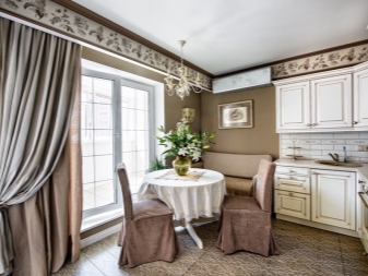 Интериорът може да бъде проектиран в нюансирани комбинации. Кафявите стени се оттеглят от завеси с подобни тонове – бежово, кремаво, розово.