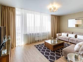 На север, с недостатъчно осветление, помещенията са ограничени само с обикновен тъкан от тюл, в слънчеви помещения се закачат само плътни завеси за защита от слънцето.