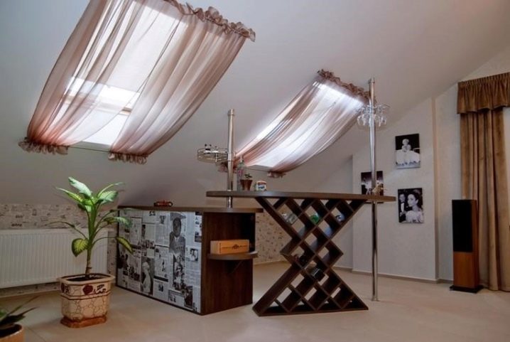 - Таванските или наклонените прозорци са доста трудни за декориране, само няколко вида завеси са подходящи за това..