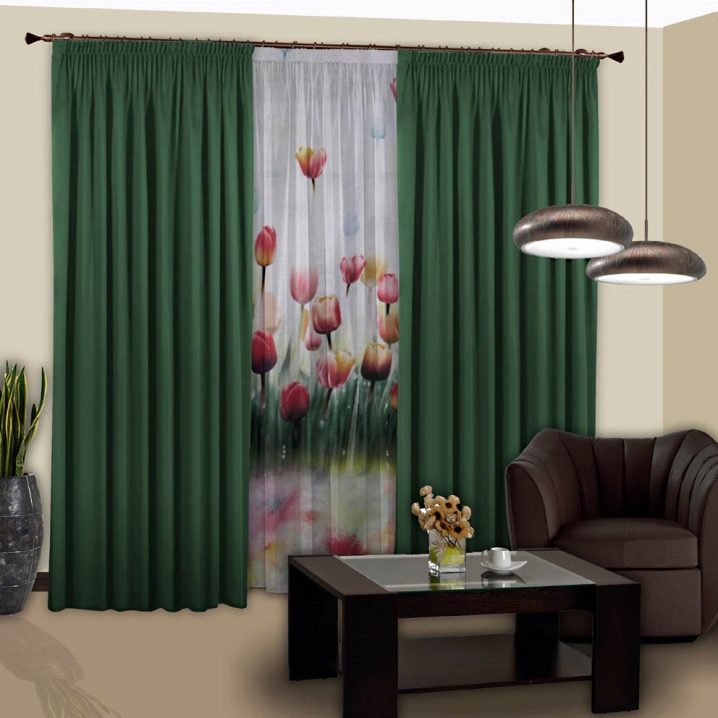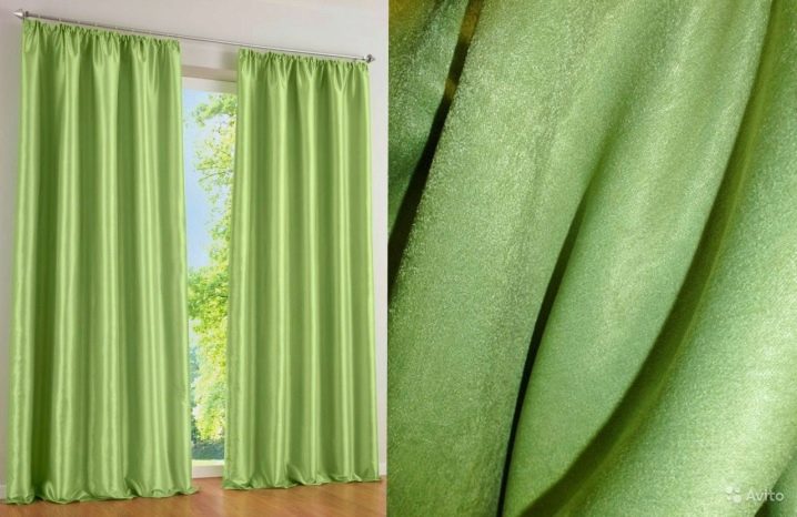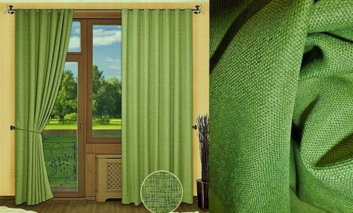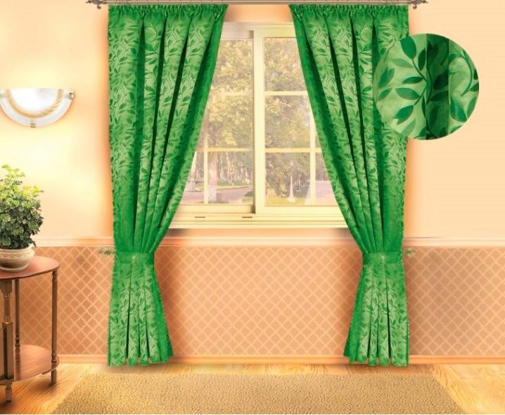 - жакард – плътна текстурирана материя, различна по дизайн и цвят. Зелените жакардови завеси с шарка не само изглеждат благородно, но и са издръжливи и издръжливи;